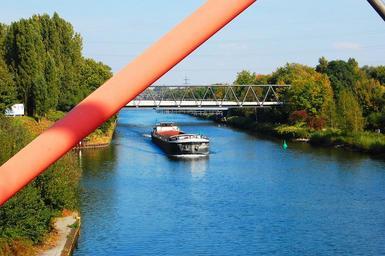 Keywords: channel ship rhine herne canal bridge gelsenkirchen buga ruhr area industrial park local recreation inland waterway transport