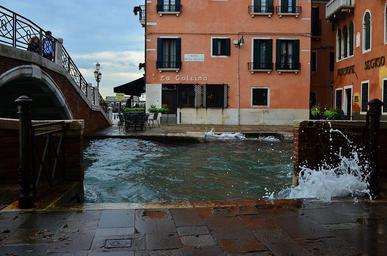 Keywords: channel spray wave venice italy day autumn building house bridge river