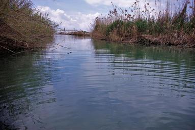 Keywords: channel water bridge forest ship reed bank bach summer rest recovery holiday nature sky landscape lake back light clouds sparkle morgenstimmung atmosphere waters