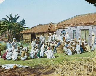 | Keywords: Chanpatia- Dispensary, India, ca. 1906 (IMP-CSCNWW33-OS14-52).jpg en <br> Chanpatia Dispensary India ca 1906 Tinted lantern slide showing a male European missionary Mr Wynd who joined the mission of Regions Beyond Missionary Union in Bihar in 1901 My Wynd sits on a wicker chair in front of two buildings one brick one thatched and is surrounded by a group of Indian men women and children in traditional dress Chanpatia was opened up as a mission station by Regions Beyond Missionary Union in 1905 The original caption to the slide reads Chanpatia Dispensary - Mr Wynd has a Quiet Talk with the patients This slide comes from a collection created by missionaries from Regions Beyond Missionary Union an interdenominational Protestant evangelical mission working in northeast India Bihar and Orissa and Nepal Photographer Unknown Filename IMP-CSCNWW33-OS14-52 tif Coverage date 1900/1910 Subject unesco Missionary work; Medical treatment; Medical centres Part of collection International Mission Photography Archive ca 1860-ca 1960 Part of subcollection Photographs from the Centre for the Study of World Christianity University of Edinburgh U K ca 1900-ca 1940s Repository name Centre for the Study of World Christianity Archival file Volume3/IMP-CSCNWW33-OS14-52 tif Repository address The University of Edinburgh School of Divinity New College Mound Place Edinburgh EH1 2LX United Kingdom Geographic subject country India Format aacr2 lantern slides 8 2 x 8 2cm Geographic subject continent Asia Rights Contact the repository for details Part of series Regions Beyond Missionary Union India captioned lantern slides CSCNWW33/OS14 Repository email divinity-CSWC ed ac uk Date created 1900/1910 Publisher of the digital version University of Southern California Libraries Subject aat genre group portraits Format aat lantern slides; photographs Geographic subject state Bihar Access conditions http //www ed ac uk/schools-departments/divinity/research/centres/world-christianity/collections-resources Geographic subject medical facilities File CSCNWW33/OS14/52 Subject lcsh Dispensaries; Missionaries; Missions medical 1900/1910 date created author http //digitallibrary usc edu/cdm/ref/collection/p15799coll123/id/78268 PD-old-70-1923 Magic lantern images Images from USC Digital Library uploaded by Fæ International Mission Photography Archive ca 1860-ca 1960 People of Bihar |