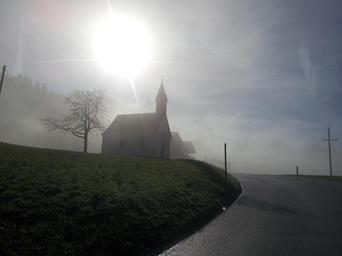 Keywords: chapel fog haze mood steeple jesus spirit christianity austria tyrol holy spirit church