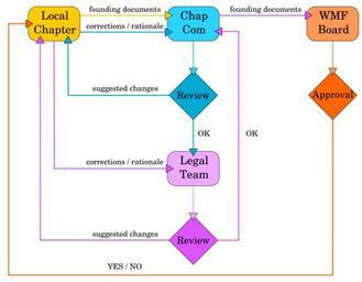 | Keywords: Chapter approval process flowchart.svg Flowchart illustrating the process of local chapter approval by WMF <br>Please note This has not yet been approved by ChapCom or the WMF Board and is not official material own 2007-02-19 Artur Jan 'WarX' FijaĆkowski PD WarX Wikipedia diagrams |