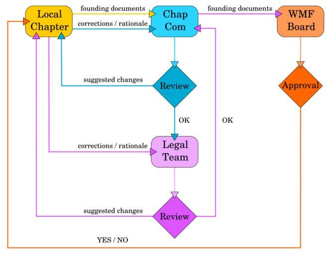 Keywords: Chapter approval process flowchart.svg Flowchart illustrating the process of local chapter approval by WMF <br>Please note This has not yet been approved by ChapCom or the WMF Board and is not official material own 2007-02-19 Artur Jan 'WarX' FijaĆkowski PD WarX Wikipedia diagrams |