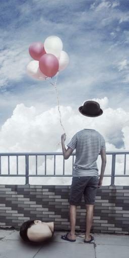 Keywords: character synthesis creative fantasy roof dream look at the sky boy hat headless balloon child