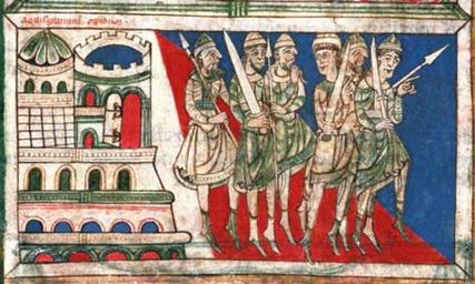 | Keywords: Charlemagne and the Knights on their way to Compostela.jpg en Charlemagne and the Knights on their way to Compostela Miniature from the Codex Calixtinus 12th century Archive-Library of the Cathedral of Santiago de Compostela Spain century 12 http //www gettyimages nl/Search/Search aspx contractUrl 2 language en-US assetType image p 23112190330 Getty Images http //www guardian co uk/world/2011/jul/07/codex-calixtinus-manuscript-stolen-santiago-compostela Guardian 7-7-2011 unknown manuscript illuminator PD-old-100 Uploaded with UploadWizard Codex Calixtinus Medieval miniatures of Carolus Magnus |