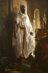 | Keywords: Charlemont - The Moorish Chief.jpg Artwork Creator Eduard Charlemont A depiction of a w Moor Moorish chief The architecture of the building in the background resembles that of the Alhambra in Spain The painting was probably exhibited at 1878 Salon Paris Salon in Paris under the name Le Gardien du serail The Harem Guard 1878 oil panel in 59 125 38 5 Institution Philadelphia Museum of Art Gallery 155 Annenberg Galleries <br> Pennsylvania Philadelphia United States accession number Cat 951 object history 1917 John G Johnson Collection 1917 credit line http //www philamuseum org/collections/permanent/102792 html mulR 26596 1 http //www painting-palace com/files/255/25443_The_Moorish_Chief_f jpg other versions 100x100px Eduard Charlemont The Moorish Chief 1878 with frame jpg Eduard Charlemont Austrian - The Moorish Chief - Google Art Project jpg PD-Art-100 The Moorish Chief 1878 by Eduard Charlemont |