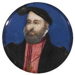 | Keywords: people portrait Charles Brandon, 1st Duke of Suffolk (c. 1484 – 22 August 1545), was the son of Sir William Brandon and Elizabeth Bruyn. Through his third wife Mary Tudor he was brother-in-law to Henry VIII. His father was the standard-bearer of King Henry VII and was slain by Richard III in person on Bosworth Field. Charles Brandon died of unknown causes at Guildford. Charles Brandon was brought up at the court of Henry VII. He is described by Dugdale as "a person comely of stature, high of courage and conformity of disposition to King Henry VIII, "with whom he became a great favourite". Brandon held a succession of offices in the royal household, becoming Master of the Horse in 1513, and received many valuable grants of land. On 15 May 1513, he was created Viscount Lisle, having entered into a marriage contract with his ward, Elizabeth Grey, suo jure Viscountess Lisle, who, however, refused to marry him when she came of age. He distinguished himself at the sieges of Thérouanne and Tournai in the French campaign of 1513. One of the agents of Margaret of Savoy, governor of the Netherlands, writing from before Thérouanne, reminded her that Lord Lisle was a "second king" and advised her to write him a kind letter. At this time, Henry VIII was secretly urging Margaret to marry Lisle, whom he created Duke of Suffolk, although he was careful to disclaim (on 4 March 1514) any complicity in the project to her father, Maximilian I, Holy Roman Emperor. After his marriage to Mary, Suffolk lived for some years in retirement, but he was present at the Field of the Cloth of Gold in 1520. In 1523 he was sent to Calais to command the English troops there. He invaded France in company with Count de Buren, who was at the head of the Flemish troops, and laid waste the north of France, but disbanded his troops at the approach of winter. Unlike his wife, Suffolk was entirely in favour of Henry's divorce from Catherine of Aragon[citation needed], and in spite of his obligations to Wolsey he did not scruple to attack him when his fall was imminent. The Cardinal, who was acquainted with Suffolk's private history, reminded him of his ingratitude: "If I, simple Cardinal, had not been, you should have had at this present no head upon your shoulders wherein you should have had a tongue to make any such report in despite of us." After Wolsey's disgrace, Suffolk's influence increased daily. He was sent with Thomas Howard, 3rd Duke of Norfolk, to demand the Great Seal from Wolsey; the same noblemen conveyed the news of Anne Boleyn's marriage to King Henry, after his divorce from Queen Catherine, and Suffolk acted as High Steward at the new Queen's coronation. He was one of the commissioners appointed by Henry to dismiss Catherine's household, a task he found distasteful. He supported Henry's ecclesiastical policy, receiving a large share of the lands after the dissolution of the monasteries. In 1544, he was for the second time in command of an English army for the invasion of France. He died at Guildford, Surrey, on 24 August in the following year. At Henry VIII's expense he was buried at Windsor in St George's Chapel. Suffolk took part in the jousts which celebrated the marriage of Mary Tudor, Henry's sister, with Louis XII of France. He was accredited to negotiate various matters with Louis, and on Louis' death was sent to congratulate the new King, Francis I, and to negotiate Mary's return to England. Love between Suffolk and the young Dowager Queen Mary had existed before her marriage, and Francis roundly charged him with an intention to marry her. Francis, perhaps in the hope of Queen Claude's death, had himself been one of her suitors in the first week of her widowhood, and Mary asserted that she had given him her confidence to avoid his importunities. Francis and Henry both professed a friendly attitude towards the marriage of the lovers, but Suffolk had many political enemies, and Mary feared that she might again be sacrificed to political considerations. The truth was that Henry was anxious to obtain from Francis the gold plate and jewels which had been given or promised to the Queen by Louis in addition to the reimbursement of the expenses of her marriage with the King; and he practically made his acquiescence in Suffolk's suit dependent on his obtaining them. The pair cut short the difficulties by a private marriage, which Suffolk announced to Thomas Wolsey, who had been their fast friend, on 5 March 1515. Suffolk was saved from Henry's anger only by Wolsey, and the pair eventually agreed to pay to Henry £24,000 in yearly instalments of £1000, and the whole of Mary's dowry from Louis of £200,000, together with her plate and jewels. They were openly married at Greenwich Hall on 13 May. The Duke had been twice married already, to Margaret Neville (the widow of John Mortimer) and to Anne Browne, to whom he had been betrothed before his marriage with Margaret Mortimer. Anne Browne died in 1511, but Margaret Mortimer, from whom he had obtained a divorce on the ground of consanguinity, was still living. He secured in 1528 a bull from Pope Clement VII assuring the legitimacy of his marriage with Mary Tudor and of the daughters of Anne Browne, one of whom, Anne, was sent to the court of Margaret of Savoy. After the death of Mary Tudor on 24 June 1533 he married in 1534 his ward Catherine Willoughby (1520–1580), suo jure Baroness Willoughby de Eresby, then a girl of fifteen. By Catherine Willoughby he had two sons who showed great promise, Henry (1535–1551) and Charles (c. 1537 – 1551), Dukes of Suffolk. They died of the sweating sickness within an hour of one another. Charles Brandon, 1st Duke of Suffolk (c. 1484 – 22 August 1545), was the son of Sir William Brandon and Elizabeth Bruyn. Through his third wife Mary Tudor he was brother-in-law to Henry VIII. His father was the standard-bearer of King Henry VII and was slain by Richard III in person on Bosworth Field. Charles Brandon died o