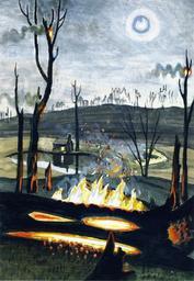 Keywords: Charles Burchfield (American, 1893-1967), Forest Fire in Moonlight, 1920. Watercolor, gouache, and pencil on paper, 26 ¼ x 18 ¾ in art-call Artistically