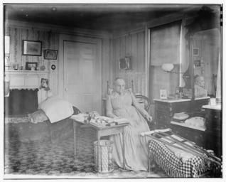 | Keywords: Charles Henry Currier 01945v.jpg en Portrait of an elderly woman About This Item Obtaining Copies Access to Original Title Portrait of an elderly woman Creator s Currier Charles Henry 1851-1938 photographer Date Created/Published between 1890 and 1900 Medium 1 photographic print Summary Elderly woman full-length portrait seated in chair in bedroom with crutches on low piece of furniture in front of her Reproduction Number LC-C801-41 b w film copy neg LC-DIG-ppmsca-01945 scan from b w film copy neg LC-DIG-ppmsca-02967 scan from adjusted print from b w film copy neg in Publishing Office Rights Advisory No known restrictions on publication Call Number LOT 11337-2 item P P Repository Library of Congress Prints and Photographs Division Washington D C 20540 USA Notes o Charles Currier Collection o Published in American women a Library of Congress guide for the study of women's history and culture in the United States / edited by Sheridan Harvey et al Washington Library of Congress 2001 p 205 Subjects o Older people--1890-1900 o Women--1890-1900 Format o Photographic prints--1890-1900 o Portrait photographs--1890-1900 http //www loc gov/pictures/item/2002712198/ Charles Henry Currier between 1890 1900 Charles Henry Currier Crutches PD-old |
