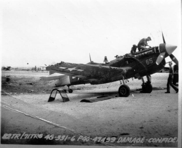 | Keywords: p-40 p40 curtiss p-40 curtissp40 blackandwhite monochrome outdoor vehicle airplane aircraft black and white Catalog #: 15_000020 Title: Charles M. Daniels Collection Photo Aircraft/Subject: Curtiss P-40 Warhawk Daniels Album Name: 71st Tactical Reconnaisance Group Reunion, 10/1990 Houston, TX Notes From Album: 82TR/71 TRG 4G-331-6 P-40-47499 Damage Repository: San Diego Air and Space Museum Archive Catalog #: 15_000020 Title: Charles M. Daniels Collection Photo Aircraft/Subject: Curtiss P-40 Warhawk Daniels Album Name: 71st Tactical Reconnaisance Group Reunion, 10/1990 Houston, TX Notes From Album: 82TR/71 TRG 4G-331-6 P-40-47499 Damage Repository: San Diego Air and Space Museum Archive |
