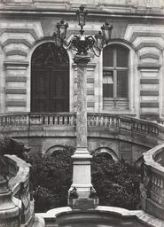| Keywords: Charles Marville, Louvre, Cour Caulaincourt, 1878.jpg Photograph en Elevated view of a marble pillar mounted on edge of possibly a fountain cluster of 5 lanterns surmounting capital of pillar pillar appears to be in a semi circle of a stone balustrade on left only partly in image a figure of a snarling wolf depicted people depicted place 1878 photographic print mounted on cardboard albumen silver 35 5 x 26 5 cm accession number H2011 78/60 SLVIC-digitalimage 109530 H2011 78/60 Title on contents page Candélabre à 5 branches Louvre Institution State Library of Victoria object history exhibition history credit line Gift; Government of France; 1881 Information field In collection Ville de Paris Collection des appareils d'éclairage au gaz établis sur la voie publique PD-100 Columns in the Palais du Louvre Historical photographs of the Louvre Collection des appareils d'éclairage au gaz établis sur la voie publique Images of Paris from the State Library of Victoria Cour Lefuel Louvre |