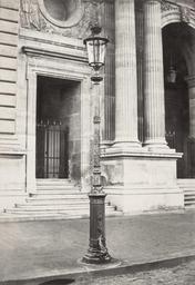 | Keywords: Charles Marville, Louvre, Pavillon Mollier, 1878.jpg Photograph en Single lantern on decorative iron lamppost at curb of street marble steps and entrance way with double pillars in background depicted people depicted place 1878 photographic print mounted on cardboard albumen silver 35 8 x 24 5 cm Institution State Library of Victoria object history exhibition history credit line Gift; Government of France; 1881 Title inscribed in ink beneath image Promenades de Paris / Candélabre accession number H88 19/103 SLVIC-digitalimage 134331 H88 19/103 Information field In collection Photographic views of Paris PD-100 Charles Marville - Photographic views of Paris Images of Paris from the State Library of Victoria Historical photographs of the Louvre Street lights in Paris 1878 in Paris 1878 photographs West facade of the Pavillon Mollien Louvre |