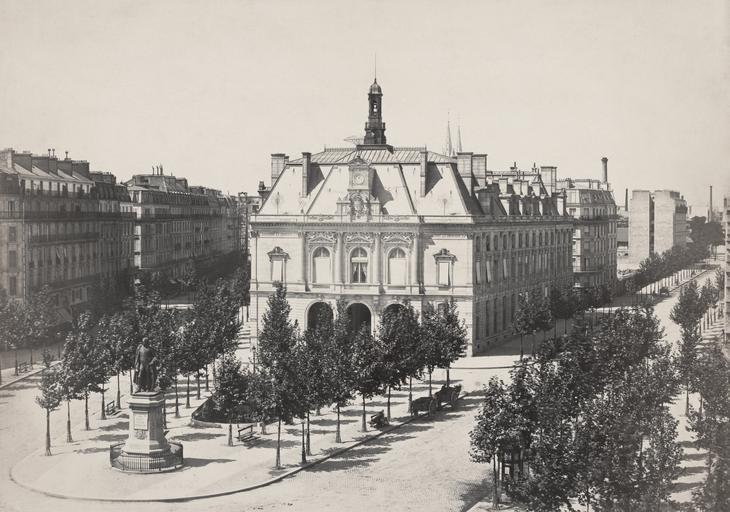 | Keywords: Charles Marville, Mairie du 11e Arrondissement.jpg Elevated view of Town Hall of Paris XIe arrondissement with tree lined avenues on both sides and a statue Au Prince Eugène Napoleon at point streets meet in foreground of image circa 1850 “70 ; bâtiment conçu par l'architecte Étienne-François Gancel et construit en 1862 et 1865 donc photographie prise entre 1865 et 1870 1 photographic print mounted on cardboard albumen silver Size cm 34 48 Institution State Library of Victoria object history exhibition history credit line Gift; Government of France; 1880 SLVIC-digitalimage 129087 H88 19/2/16 Photographer not stated but Charles Marville <br>Title inscribed in black ink on label pasted to folio page beneath image <br>Undated dates assigned from Haussman's renovation of Paris accession number H88 19/2/16 PD-100 Town hall of Paris 11e arrondissement Place Léon-Blum Paris Boulevard Voltaire Paris Avenue Parmentier Paris Charles Marville - Photographic views of Paris Images of Paris from the State Library of Victoria |