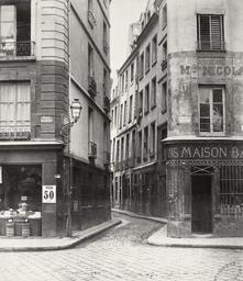 | Keywords: Charles Marville, Rue des Lavandières, de la Place Maubert, ca. 1853–70.jpg Photograph en Looking from cobbled street towards entrance to a narrow lane zig zagging behind building street names on plaques on corner of buildings street light on bracket on corner building on left building on left with groceries on display building on right a wine shop with bars on window Buildings in narrow street with door opening onto narrow pathway depicted people depicted place circa 1853 “70 photographic print mounted on cardboard albumen silver 31 3 x 27 cm Institution State Library of Victoria object history exhibition history credit line Gift; Government of France; 1880 Photographer unknown but probably Charles Marville Undated dates assigned from time of Haussman's renovation of Paris Title hand inscribed on label adhered to portfolio page beneath image accession number H88 19/46 SLVIC-digitalimage 116527 H88 19/46 Information field In collection Photographic views of Paris PD-100 Charles Marville - Photographic views of Paris Images of Paris from the State Library of Victoria Former streets of Paris Rue Galande Paris Place Maubert Paris Historical images of Paris 8e arrondissement |