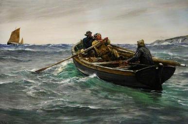 | Keywords: Charles Napier Hemy - A Pull to Windward, Falmouth, Cornwall.jpg Charles Napier Hemy Charles Napier Hemy 1841 - 1917 1913 oil canvas cm 60 4 89 Sheffield Galleries and Museums Trust Sheffield Galleries and Museums object history credit line presented by Mr Gaymond 1949 accession number VIS 3178 a-pull-to-windward-falmouth-cornwall-71877 PD-old-auto-1923 1917 Charles Napier Hemy Sheffield Galleries and Museums Trust Paintings of fishermen sitting in boats Sou'wester in art | ||||