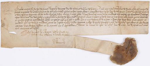 | Keywords: Charles, régent du royaume demande à Jean de Duison de faire abattre Toutes les forteresses qui pourraient nuire au royaume et à la ville de Paris, notamment... - Archives Nationales - AE-II-376.jpg Charles régent du royaume demande à Jean de Duison grand prieur des hospitaliers de France capitaine de la ville et de la vicomté de Paris de faire abattre Toutes les forteresses qui pourraient nuire au royaume et à la ville de Paris notamment celle de Bolon Mandement donné au Louvre 17 mars 1359 1359-03-17 parchment Institution Archives nationales France AE/II/376 object history exhibition history credit line Archives Nationales cooperation project PD-old-100-1923 accession number AE/II/376 K//948/40 Collections of Archives nationales France 1359 in FranceMedia contributed by the Archives Nationales France /5 Charles V of France |