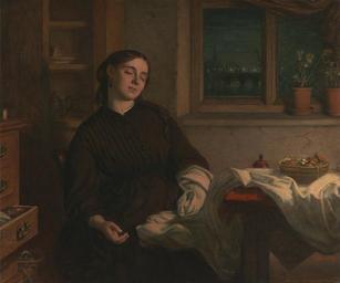 | Keywords: Charles West Cope - Home Dreams - Google Art Project.jpg No inscription Inscription _Signed_and_Dated Signed and dated in red paint lower right CWC 1869 monogramed Not on View Oil on canvas on panel plate sleeping night night interior seamstress Victorian woman dream thread window sill spool window window drawers furniture components plants plants chair table costume thimble tankard sewing basket cityscape genre subject special url_id IgFoLfiuN0X84g PD-old-100-1923 1890 Charles West Cope Google Art Project works by Charles West Cope Sleeping women in art |