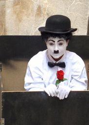 Keywords: charlie chaplin man rose clothing hat luggage costume face mask clown