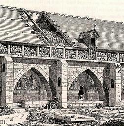 Keywords: Charnier at Saints Innocents Cemetery.jpg Charnier at the Saints Innocents Cemetery Paris The mural of a Danse Macabre is visible at the wall http //grande-boucherie chez-alice fr/Innocents htm date author PD-old Cimetière des Innocents