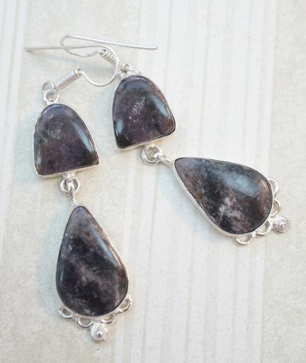 Keywords: charoite purple dark black earrings exotic belly dance costume silver sterling gemstone gems stones semiprecious jewelry jewel cabochon handmade setting cabs display fashion vintage