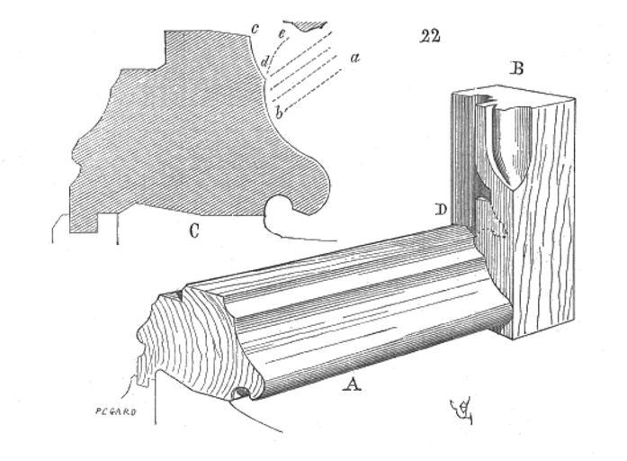 | Keywords: Chassis.fenetre.hotel.Tremoille.Paris.png Ces croisées en bon bois de chêne étaient tracées et façonnées avec grand soin; leurs vitraux étaient comme nos vitres posés en feuillure et mastiqués La figure 22 donne l'assemblage du jet d'eau inférieur A dans le montant du dormant B On voit en D comment le jet d'eau du grand châssis ouvrant venait s'embréver en partie dans le montant dormant possédant une gueule de loup C donne le profil de ce jet d'eau A; ce profil était tracé de manière à empêcher l'eau de pluie chassée par le vent suivant l'inclinaison <i>a b</i> de remonter dans la feuillure <i>c</i> La courbe <i>d b</i> obligeait la goutte d'eau poussée par le vent sur ce profil à suivre la courbe <i>d e</i> c'est-à-dire à retomber à l'extérieur Ces détails font voir avec quelle attention les menuisiers de cette époque établissaient leurs épures comme ils donnaient aux moulures une forme convenable en raison de leur place et de leur destination Viollet-le-Duc Window Viollet-le-Duc Hôtel de la Trémoille |