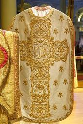 | Keywords: Chasuble presented to Archbishop Patrick W. Riordan on his silver jubilee, 1908, silk and gold thread, view 2 - Saint Ignatius Church, San Francisco, CA - DSC02620.JPG en Exhibit in Saint Ignatius Church San Francisco California USA Photography was permitted without restriction 2015-05-14 17 01 44 own Daderot other versions cc-zero Exhibits in Saint Ignatius Church San Francisco Uploaded with UploadWizard Chasubles | ||||