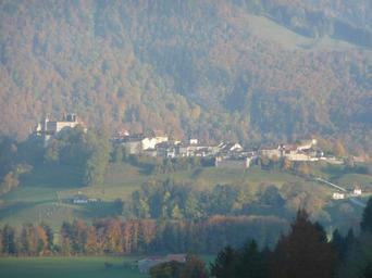 Keywords: Château de Gruyères from Le Pâquier-Montbarry (autumn).JPG en Château de Gruyères from Le Pâquier-Montbarry Le Pâquier Fribourg autumn own MMMada Castle of Gruyères