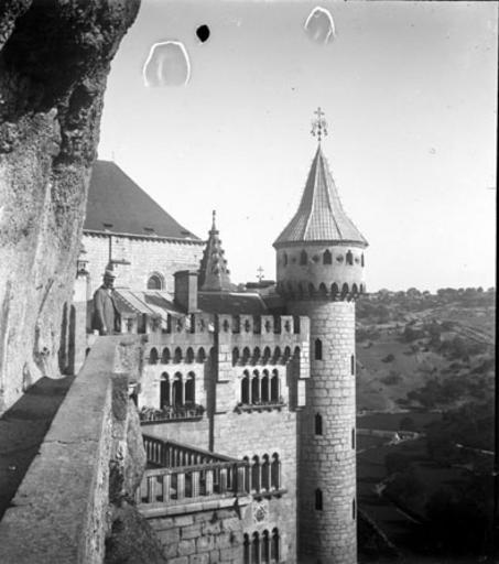 | Keywords: bibliothèque de toulouse bibliothèquedetoulouse castle turret view cliff castle tower castletower château de rocamadour châteauderocamadour octobre 1900 octobre1900 1900 14th century 14thcentury restored 19th century restored19thcentury architecture remparts blackandwhite monochrome outdoor black and white Fonds Trutat - Photographie ancienne Cote : TRU C 780 Localisation : Fonds ancien (S 30) Original non communicable Titre : Château de Rocamadour, octobre 1900 Auteur : Trutat, Eugène Rôle de l’auteur : Photographe Lieu de création : Rocamadour (Lot) Date de création : 1898 Mesures : : 10 x 8 cm Observations : Plaque abimée Notes de la main de E. Trutat : "Bellieni" Mot(s)-clé(s) : -- Château -- Tour -- Mur -- Créneau -- Paysage -- Fortification -- Rempart -- Toit -- Fenêtre -- Rocher -- Pierre -- Balustrade -- Homme -- Costume masculin -- Automne -- Vallée -- Colline -- Rocamadour (Lot) -- Château de Rocamadour (cité mariale) -- Gramat (Lot ; canton) -- Midi-Pyrénées (France) -- 20e siècle, 1e quart -- 13e siècle Médium : Photographies -- Négatifs sur plaque de verre -- Noir et blanc -- Vues d'architecture Bibliothèque de Toulouse. Domaine public Fonds Trutat - Photographie ancienne Cote : TRU C 780 Localisation : Fonds ancien (S 30) Original non communicable Titre : Château de Rocamadour, octobre 1900 Auteur : Trutat, Eugène Rôle de l’auteur : Photographe Lieu de création : Rocamadour (Lot) Date de création : 1898 Mesures : : 10 x 8 cm Observations : Plaque abimée Notes de la main de E. Trutat : "Bellieni" Mot(s)-clé(s) : -- Château -- Tour -- Mur -- Créneau -- Paysage -- Fortification -- Rempart -- Toit -- Fenêtre -- Rocher -- Pierre -- Balustrade -- Homme -- Costume masculin -- Automne -- Vallée -- Colline -- Rocamadour (Lot) -- Château de Rocamadour (cité mariale) -- Gramat (Lot ; canton) -- Midi-Pyrénées (France) -- 20e siècle, 1e quart -- 13e siècle Médium : Photographies -- Négatifs sur plaque de verre -- Noir et blanc -- Vues d'architecture Bibliothèque de Toulouse. Domaine public |