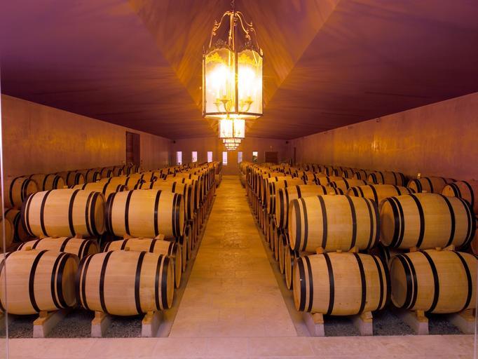Keywords: CHATEAU LUSSAC-015.jpg en Chateau de Lussac's Oak barrel cellar fr Le chai à barriques du Château de Lussac own Relaisfrancmayne Château de Lussac Barrique wine barrels