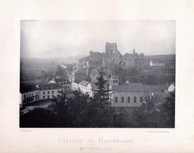 | Keywords: ChateauHesper.jpg en Luxembourg Hesperange Fortress lb Lëtzebuerg Foto vun der Hesper Buerg Luxembourg ruines du château de Hesperange « Château de Hesperange détruit en 1483 » de Burgruine Hesperingen Own scan by user Jwh 1859 1933 Creator Charles Bernhoeft PD-old Charles Bernhoeft Hesperange Castle Historical images of Luxembourg |