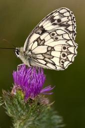 Keywords: checkered butterfly butterfly blossom bloom thistle macro