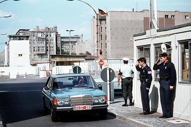 | Keywords: Checkpoint Charlie in 1982.JPEG US security policemen salute a passing vehicle with white on red vehicle registration plate CD 57-06 at Checkpoint Charlie the allied entry point into East Berlin http //www defenseimagery mil; http //www defenseimagery mil/imagery html guid f243d447424ceb1139a4d6deaa068ba3b2a3c587 VIRIN DF-ST-83-08061 1982 08 19 Thomas Farr PD-USGov Checkpoint Charlie between 1961 and 1989 1982 in Berlin Mercedes-Benz W123 License plates of German Democratic Republic Watchtowers at the Inner German border Photographs of flags of the German Democratic Republic Photographs of flags of the United States in Germany Diplomatic license plates Red license plates |