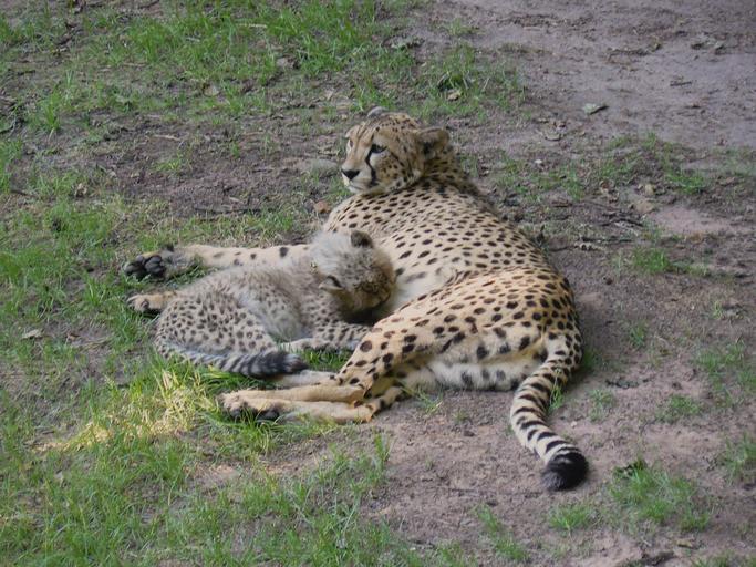 Keywords: Cheetah with cub Nürnberg.JPG en Cheetah with cub Acinonyx jubatus Tiergarten Nürnberg own Mammalwatcher 2010-07-20 Acinonyx jubatus juvenile Suckling animals Acinonyx jubatus in Tiergarten Nürnberg Cc-zero