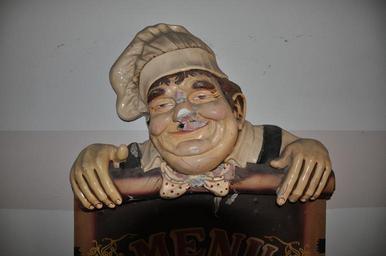 Keywords: chef old figure chef hat man sign antique vintage retro senior wooden restaurant aged decay hat profession standing smile wood