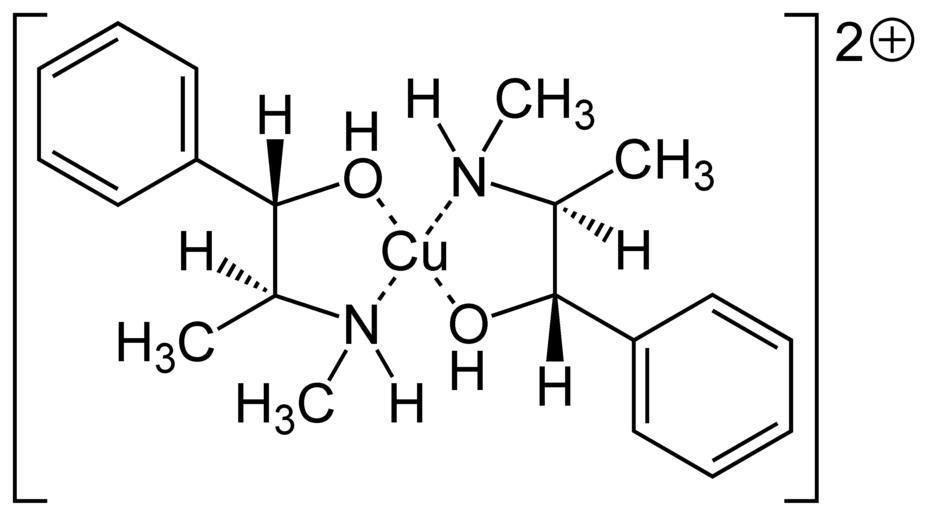 Keywords: Chelatkomplex Chen-Kao Reaktion.png de Chelatkomplex_Chen-Kao_Reaktion own Jü 2010-05-21 Pseudoephedrine Copper complexes Complex cations Amino complexes O-donor complexes