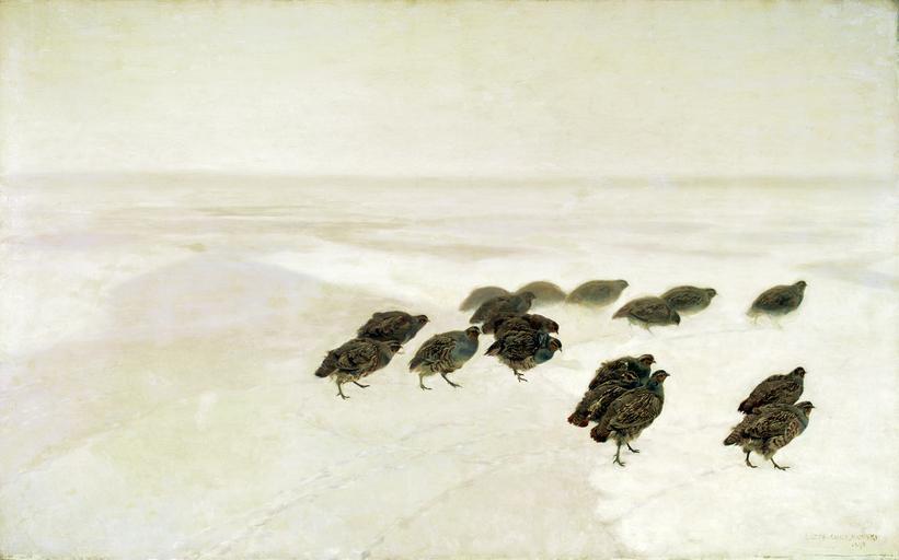 | Keywords: Chełmoński Partridges in the snow.png Artwork Creator Józef Chełmoński 1891 oil canvas cm 123 199 Institution National Museum Warsaw 1 accession number MP 424 128112 object history ProvenanceEvent gift National Museum in Warsaw credit line Józef Chełmoński 1891 signatue/date http //cyfrowe mnw art pl/dmuseion/docmetadata id 4787 cyfrowe mnw art pl http //wolnelektury pl/media/pictures/images/pejzaz-i-miasto-chelmonski-kuropatwy_3 png wolnelektury pl See below PD-old-100-1923 1914 DEFAULTSORT 1891; Partridges in the snow High-resolution images from the National Museum in Warsaw Paintings by Józef Chełmoński in the National Museum in Warsaw Partridges in art Birds in snow 1891 paintings |