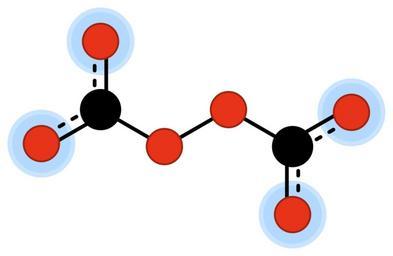 Keywords: Chemfm peroxodicarbonate 2neg.svg en Molecular 2D diagram of the peroxodicarbonate anion for the en oxocarbon anion article own Jorge Stolfi 2010-02-15 Oxocarbon anions