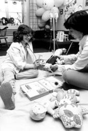 | Keywords: Chemotherapy education.jpg A female patient and nurse both seated on the floor The female nurse is teaching the girl about procedures and techniques associated with chemotherapy Topics/Categories People -- Adult People -- Child People -- Health Professional and Patient Treatment -- Chemotherapy Type B W Photo Source National Cancer Institute Bill Branson Photographer 2139 1983-06 Reuse Restrictions None - This image is in the public domain and can be freely reused Please credit the source and/or author listed above Bill Branson Photographer PD-USGov-HHS-NIH Media from National Cancer Institute Visuals Online Chemotherapy Images uploaded by Fæ |