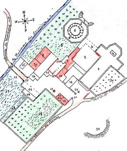 Keywords: Cherlieu-plan-abbaye.jpg Auteur Jean-René Sujet Plan de l'abbaye de Cherlieu ; les zones en rouge représentent les vestiges actuels Plan de Cherlieu au moment de la Révolution 1 Eglise ; 2 Cloître ancien ; 3 Maison conventuelle 1708 ; 4 Quartier des novices; 5 Nouveau palais monastique ; 6 Cloître moderne 17 mai 1773 ; 7 Façade du Levant et grand escalier ; 8 Jardin et verger ; 9 Maisons de domestiques ; 10 Remises ; 12 Quartier de l'abbé ; 11 et 13 Maison des portiers ; 13 bis Prison ; 14 et 16 Dépendances ; 15 Colombier ; 17 Etang actuellement desséché ; 18 Carpière ; 19 Jardin de l'abbé ; 20 Ruisseau des Ecrevisses ; 21 23 24 25 Portes ; 22 Ancienne digue ; 20 Emplacement ancien de la Croix ; 27 Emplacement actuel de la Croix monolithe de Ferdinand de Rye 1613 ; 28 Pont et vannage ; 20 Maison du notaire royal et abbatial ; 30 Cimetière des moines ; 31 La grande Carrière Transferred from http //fr wikipedia org fr wikipedia; transferred to Commons by User Bloody-libu using http //tools wikimedia de/~magnus/commonshelper php CommonsHelper 2006-10-06 Original uploader was Jean René at http //fr wikipedia org fr wikipedia Released into the public domain by the author fr wikipedia Jean René Original upload log page fr wikipedia Cherlieu-plan-abbaye jpg 2006-10-06 13 24 Jean René 462×550× 47779 bytes <nowiki>Plan de l'abbaye de Cherlieu ; les zones en rouge représentent les vestiges actuels</nowiki> Abbaye de Cherlieu |