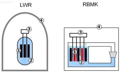 | Keywords: Chernobyl-LWR-comparison.PNG The critical differences in the RBMK reactor compared to a LWR Light Water Reactor that directly contributed to the Chernobyl disaster 1 The flamable graphite moderator in the reactor core that burned in the fire 2 The positive void coefficient in the water that made possible the power peak that blew the reactor vessel 3 The control rods were very slow they took 18-20 seconds to be inserted into the reactor Moreover they had graphite tips that actually intensified the fission chain reaction in the beginning of the insertion 4 No containment building at all self-made data from IAEA http //www-pub iaea org/MTCD/publications/PDF/Pub913e_web pdf INSAG-7 The Chernobyl Accident Updating of INSAG-1 Vienna 1992; NEA http //www nea fr/html/rp/reports/2003/nea3508-chernobyl pdf Chernobyl - Assessment of Radiological and Health Impacts Pariisi 2002; Nakao M http //shippai jst go jp/en/Detail fn 2 id CA1000644 Chernobyl Accident University of Tokyo 2006 2008-02-15 Tungsten Schemata of nuclear reactors IAEA Chernobyl Nuclear Power Plant |
