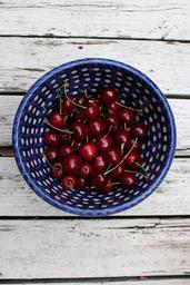 Keywords: cherries bowl red blue white fruits fruit fruit bowl sweet delicious food vitamins eat frisch healthy garden