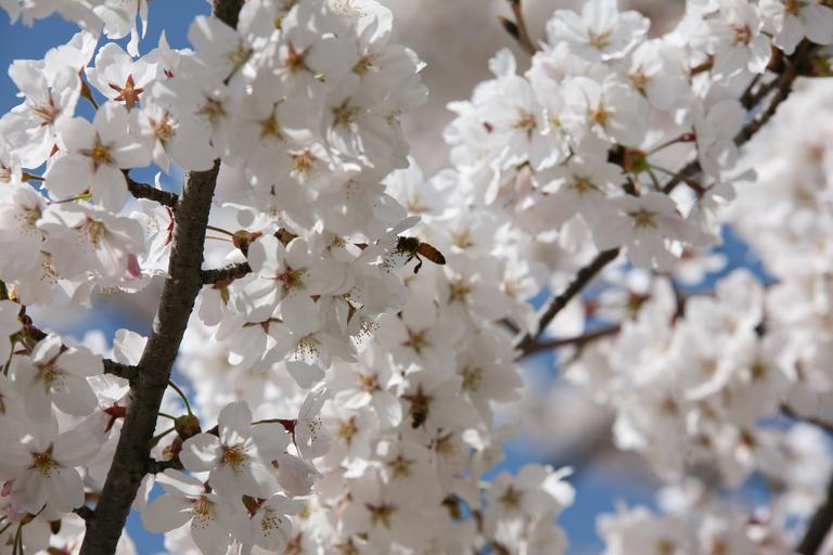 Keywords: cherry blossom april spring flowers nature plants spring flowers bee wood flower tree white flower pink flower blossom insects