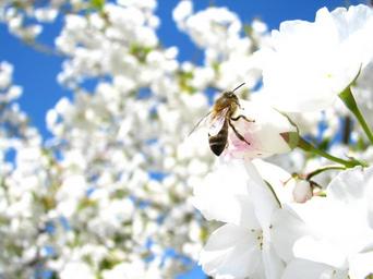 Keywords: cherry blossom sky white flower bee spring nature insect flora petals