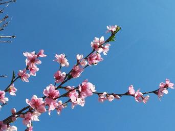 Keywords: cherry blossoms blossom bloom sky spring cherry blossom japanese cherry pink blue