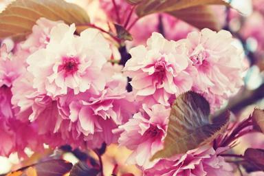 Keywords: cherry blossoms spring flowers pink pink flowers tree leaves flower plant green summer garden red flora nature cheerful serene background bush