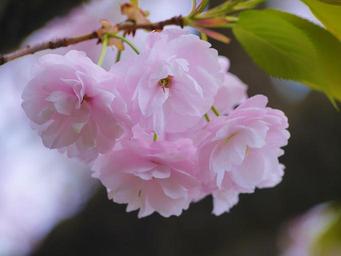 Keywords: cherry cherry blossoms double cherry blossoms pink green leaf karen cute cool quiet japan kanagawa yokosuka otsu park antomasako ya up petal soft branch