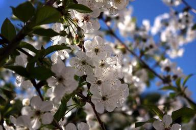 Keywords: cherry white flowers blue background white blue cherry blossom flower nature