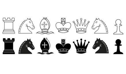 Keywords: chess chess icons shah of persian king the royal game strategic board game game characters symbolic play black white figures tower springer runners lady bauer