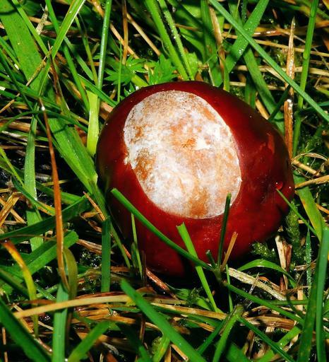 Keywords: chestnut autumn tree fruit shine chestnut fruit brown nature ground grass