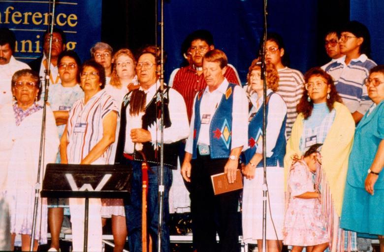 | Keywords: northern cheyenne mennonite choir northerncheyennemennonitechoir mennonite world conference winnipeg manitoba canada mennoniteworldconferencewinnipegmanitobacanada people groupshot Caption: The Northern Cheyenne Mennonite Choir. Citation: Mennonite World Conference. Twelfth Mennonite World Conference, 1990, Winnipeg, Canada. Slides by T. Klassen; Script by John Dyck. X-9 Box 52 Folder 4 Slide 72. Mennonite Church USA Archives - Goshen. Goshen, Indiana. Caption: The Northern Cheyenne Mennonite Choir. Citation: Mennonite World Conference. Twelfth Mennonite World Conference, 1990, Winnipeg, Canada. Slides by T. Klassen; Script by John Dyck. X-9 Box 52 Folder 4 Slide 72. Mennonite Church USA Archives - Goshen. Goshen, Indiana. |